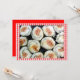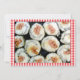 Sushi med röda och vita konstnärliga mönsterdekorationer.