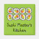 Cute och färglös magnet för hushållets sushi-mästare, med en bild av brigt färgad sushi och ord, Sushi Master's Kitchen. Du kan enkelt ändra text och bakgrund i färg genom att klicka på anpassningsknappen. Besök butiken för matchande kort och gåvor i det här sushi-intervallet.