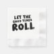 Sushi party kallade pappra servetter som säger "Låt bran rulla".