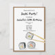 Daphsams bildfunktioner Sushi Rolls i denna fantastiska utformning är både roligt och elegant. Den här högtematiska festinbjudan ser utmärkt ut oavsett om du rullar på din egen sushi eller roar dig på din favoritrestaurang. Perfekt för födelsedagar i alla åldrar. Ändra bara texten så att den återspeglar händelseinformationen.