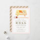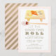 Denna stilrena och moderna " Låt de goda tiderna rulla" nyårsfest inbjudan har akvarell sushi på träbräda med ätpinnar på vit bakgrund, infattad av en rosafärgad kant. Baksidan har diagonala ränder i rosafärgad och falskt guld. Ändra bakgrundsfärgen på både framsida och baksida och anpassa den efter dina behov.