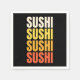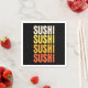 Enkel, färglös textdesign med texten "Sushi, Sushi, Sushi" i beige, gult, orange och rött färg