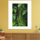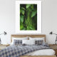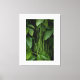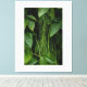 This artistic photograph delves into the exuberance of tropical green, presenting a fascinating visual interplay between different botanical forms. In the foreground, long, delicate stems descend vertically, creating a linear texture that resembles a living curtain. In the background, broad, glossy deep green leaves offer a robust contrast, filling the frame with a sense of freshness and vitality. The soft lighting highlights the veins of the leaves and the subtle details of the vegetation, making this piece ideal for those seeking a decor that conveys serenity, balance, and a direct connection with the environment. A perfect choice for lifestyle and interior design products that value biophilic aesthetics.
