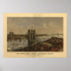 1885 Historiskt perspektiv på Brooklyn Bridge (Underbara Öster River Suspension Bridge) tittar sydost över floden Öster från Manhattan till Brooklyn, New York Harbour, Statan Island, New jersey och Frihetsgudinnan. Bild med hög upplösning som lämpar sig för stora eller små kopior. Detta är en reproduktion och kan ha förbättrats digitalt för att avhjälpa brister, stora fläckar etc.