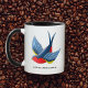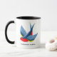 Traditionell svälj blå och röd tatuering i bakgrunden av svart