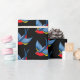 Traditionell svälj blå och röd tatueringskonst i bakgrunden av svart.