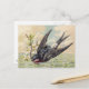 Romantisk vintage bild av en flygning sväljer med en blomstrande vink, med havet under.