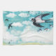 En flock Sväljer som flyger över ett vete fält. Sväljer att flyga över blå himmel under sommarsäsongen. Vild och gratis. - Illustration från Bok för bild bok "fågelskrämman och svälj" (skriven och illustrerad av Julia Doria). Perfektens gåva till naturen och fågeln älskare.