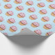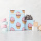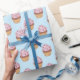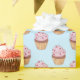 Den här presentförpackningens papper visas på en ljusblå färg-papper med en söt rosa-cuptårtutskrift från Birthday. Anpassa det här objektet eller köp som det är. Lagrar-bild