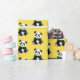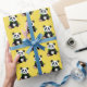 Papper för presentsäck som visas i gultens bakgrund färg med ett sött pandatavtryck. Papper projektionsyta visas. Anpassa den här pappra eller köp som det är.
