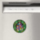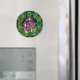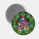 En magnet med färglösa, psykedeliska svampar omgivna av grönt paisley och grönt mandalas.