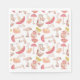 Papper napkindesign: mönster i vildens svamprum på vit bakgrund. Utformningen skapades med handmålade vattenfärgsvampar i röda och bruna nyanser.