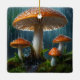 Fyra svampar som växer upp ur de mest regna faller. Vatten pärlor har sina ljusbruna kapslar och springa bort genom mossarna. Samma bild vänd vågrätt på baksidan.