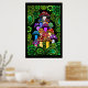 En poster med färglösa, psykedeliska svampar omgivna av grönt paisley och grönt mandalas.