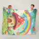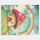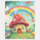 Cute svampgårdar med röda, bruna och blå hattar med vita fläckar. En blå himmel med regnbåge. Snyggt på väggen i ett barnsovrum.