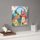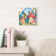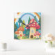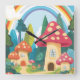 Cute svampgårdar med röda, bruna och blå hattar med vita fläckar. En blå himmel med regnbåge. Snyggt på väggen i ett barnsovrum.