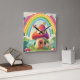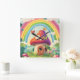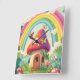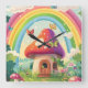 Cute svampgårdar med röda, bruna och blå hattar med vita fläckar. En blå himmel med regnbåge. Snyggt på väggen i ett barnsovrum.