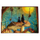 Söt bild av två katter som sitter på toppen av en jättesvamp i en skog fylld med svampar och ser på när höstlöven faller mot solen och den blå himlen för att skapa en underbar saga skog bild.