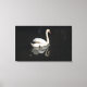 Ett foto av ett vitt svan som glidar över mörken stilla vatten. Tagen i Roath Park Sjö, Cardiff, Wales.