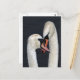 Vårt vackra vykort för fågel älskare - och älskare - har ett nära foto av ett par svan som rör vid näbbar och klor. Bägge fåglarna är belägrade med droppar från vatten och deras fjädrar ser vackert mjuka och diskreta ut.