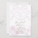 Eleganten inbjudningskort för möhippan har ett svan-par med en båge/band och blommigt/blommor i rosa. Baksidan har en ljuslavendel lila med toile de jouy mönster på rosa. Anpassa den efter dina behov. Du hittar matchande produkter i min butik.