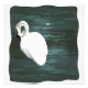 En målning av en sovande Mute Svan som flyter längs yta i en damm, där nyansen av vatten är blå och grönt. En enda vattenfri plats vid dammens yta. Bild Copyright ©2022 Kimberly J Tilley. zazzle.com/store/kimberlyjt