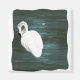 En målning av en sovande Mute Svan som flyter längs yta i en damm, där nyansen av vatten är blå och grönt. En enda vattenfri plats vid dammens yta. Bild Copyright ©2022 Kimberly J Tilley. zazzle.com/store/kimberlyjt
