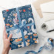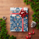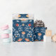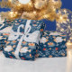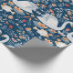 Svanar, fisk, blommor i blå bakgrund. Dekorativ Presentpapper