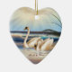 Svanar kopplar ihop - kärlek - den hjärtformade julgransprydnad keramik