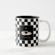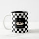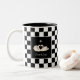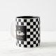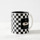 Svanar på svart-vit schack tvåtons kaffemugg