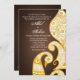 En dramatisk inbjudan med en guldbalks och vit Mehndi-svandesign mot en rik brun bakgrund. Lämplig för alla tillfällen. Kortet är lätt att anpassa med din egen text, teckensnitt, teckensnittsfärg och val av papperstyp.