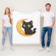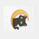 Sväng svart katt med glättande Grönt Ögon Sitta Fleecefilt
