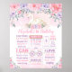 Feminint rosa, lila och guld 1-års födelsedagsmilsten-plakat med eleganta akvarellblommor och en söt svanprinsessa