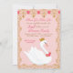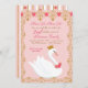 En snygg svanprinsessdesign utförd i nyanser av rosa och guld. Sätt scenen för en rolig och elegant fest med denna vackra svan iklädd sin förtjusande krona omgiven av filigran och rosor. Glittret som används i denna inbjudan är en söt digital design.