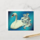 Kunglig svan och vacker vit hibiskusblomma med kvarvarande regndroppar natur konst personlig postkort. Klicka på Anpassa för att lägga till text. Denna bild finns tillgänglig på många produkter i min butik. Tack för besöket Smilin' Eyes Treasures.