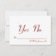 En djärv, vit "XOXO" dekorerar baksidan av detta stilfulla röda och vita svarskort, vilket gör det perfekt för Alla hjärtans dags-bröllop eller julbröllop. Denna trendiga och moderna stil förstärks ytterligare med ett enkelt Ja/Nej-svar att ringa in.