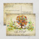 Medeltida renässansinspirerad estetisk skogig folklig blomma Träd RSVP är toppad med en Whimsisk vildblomma skogsblomning som du bara måste se! Detta svarsbrev vykort har alla färger: Terrakotta Orange Korall Rosa Brun Gul Elegans och Blå. Tänk dig ett vår-, sommar- eller höstromantiskt fantasifullt virvlande träd i en förtrollad skog längs en elegant lanthushållsväg. Så färgglatt och folkligt! En folkkonst botanisk estetik förvisso. Också, med alla dessa virvlande blommor utstrålar denna lekfulla design den boho bohemiska estetiken och är perfekt för vår-, sommar- och höstbröllop. När som helst utom vinter egentligen. Detta jordtonade Bruna Träd är