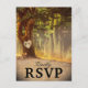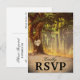 Eleganta vintage bröllopskort med svarskupon, med en romantisk sjö i en skogsmiljö, ett gammalt rustikt träd med ett snidat hjärta och dina initialer inuti, och en anpassningsbar mall för bröllopssvar.