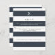 FÄRGPALETT: marinblått och vitt DESIGNKOLLEKTION: Matchande vertikala designsvarskort med menyval (ta helt enkelt bort eller ersätt texten på den raden om du inte behöver dem). Med ett chic och trendigt designtema med breda ränder har denna inbjudan en modern trendig stil. Varje textlager alternerar mellan det mörkblå och det vita för en enkel men fantastisk effekt. Djärv grafik, men ändå stilren och fashionabel. Vi har en komplett produktuppsättning som koordinerar. Monograminitial och rsvp-information är enkel att anpassa med hjälp av de personliga mallfälten.