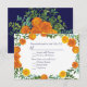 Vackra bröllopsinbjudningar med Orange och marinblå peony och ro blommigt med rikligt grönt. Perfekt för ett tema för blommigt eller för det traditionella vita bröllop i Vår eller Sommar. Anpassa färg och texten för att få bröllopet att bjuda in dig själv!