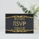Svart Guld Damask Bröllopsinbjudan RSVP.