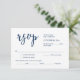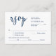 Det här är det vackra Modern Romantic OSA-kortet (Respond) i klassens blått typsnitt, där du kan redigera, ändra färg och formatera det enligt ditt designkrav, med måltider, reserverade sittplatser, nummer och alternativ för att begära sång. #TeeshaDerrick