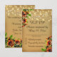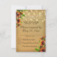 Detta RSVP-bröllopskort har ett rustikt solros-tema. Överst till vänster och nederst till höger på framsidan finns en bild tagen från ett fotografi av vackra orangea och gyllene solrosor. En sträng av vita lysande ljus slingrar sig och förstärker den eteriska känslan. Allt på en bakgrund av ljust mellanbruna sepia-nyanser med en något mörkare kant i te-stil. All text kan ändras. Du kan ändra formuleringen, teckensnittet och färgen och storleken på teckensnittet både fram- och baksida. Matchande föremål finns i min "Sunflower Wedding"-samling.