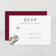 Ett modernt och modernt bröllop-svar/OSA kort, med en grönt och ett rött vattenfärgsbär i gren. Baksidan är i fast burgundi. Matchande objekt i den här designen är tillgängliga.