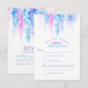 Blusande vinblommor, moderna botanica-färgade målarkonsthandkort för bröllop OSA. Fin blommigt konst perfekt i söt av lila, vattenblått och rosa på vitt. Andra matchande bröllop-artiklar tillgängliga. © Original vattencolor art and design by Sarah Trett www.sarahtrett.com for www.mylittleedenweddings.com