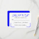 Gör det enkelt för dina gäster att svara med det här charmerande royalet, blått och vitt blommigt-svarskort för OSA. Kortet har en söt och enkel blå blommigt som snabbt framhävs mot en gräddvit bakgrund. Ett sött blått hjärta mönster lägger baksidan av kortet. Du kan anpassa kortet helt och hållet för att passa bröllop eller händelsen. Den här OSAN är även tillgänglig utan menyalternativ och i vykortsformat. Den här OSA kort är en del av Vintagen Blue & White Blommigt Wedding Suite Matching Products som du kan använda... Märkre: party osa. blå osa, bröllop OSA, blått bröllop OSA, blommigt bröllop OSA, blåa blommor osa, blå osa, bröllop, -responskort