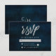 Mörk blått vattenfärgsdesign i marinen, med Silver Gnistra Typografi och vacker vattenfärgsbakgrund i struktur. Med Modern Chic Script Typsnitt. Ett trendig och Luxuriöst stil - Personlig Bröllop OSA kort! ~ Kolla min butik för att se hela bröllop-svit för den här designen!