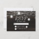 Oak Ridge Rustic Mörk Brown Barn Wood, Sparkling Mason Burk och Glowing String Ljus Design with Twinkling strands of dangling ljus and burk on a deep rik wood struktur med vita accents. Med Typsnitt för modern typografi. En rustik elegant land-jordbrukshus stil - Personligens Bröllop OSA-kort! ~ Kolla min butik för att se hela bröllop-svit för den här designen!