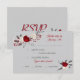 Fina röda och vita blommor mot grått bakgrund med botaniskt OSA kort som måltid. glitter-uppgifterna simuleras