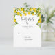 Med citroner och blommande grönska är detta stilrena botaniska svarskort anpassningsbart med din speciella RSVP-information, med en prickig bakgrund på baksidan, eller lägg till ytterligare information som menyval. Perfekt för bröllop, bröllopsdusch, baby shower, dop, förlovningsfester, årsdagsfirande, examen, födelsedagar och andra speciella händelser under året! Designad av Thisisnotme
